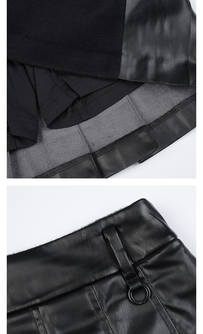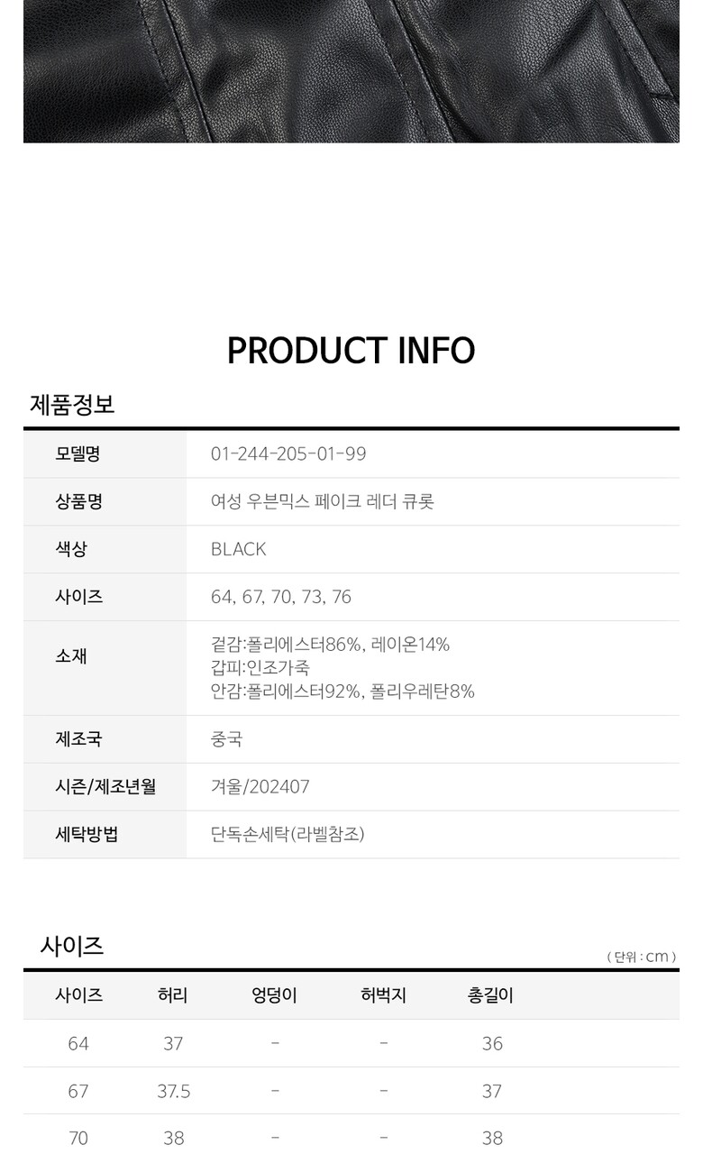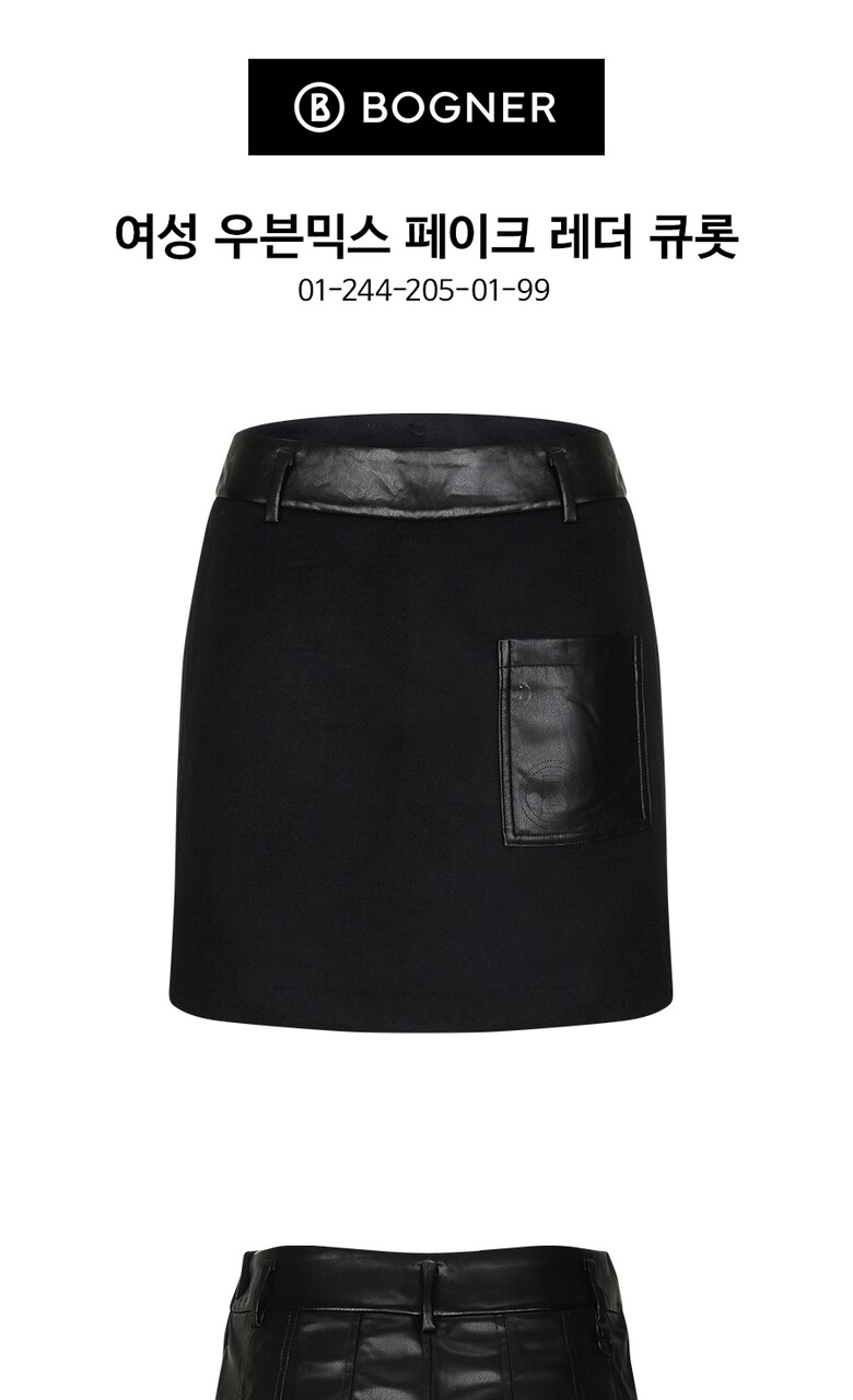 [보그너] 여성 우븐믹스 페이크 레더 큐롯 BLACK