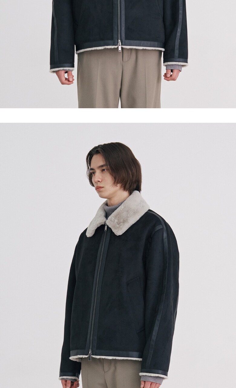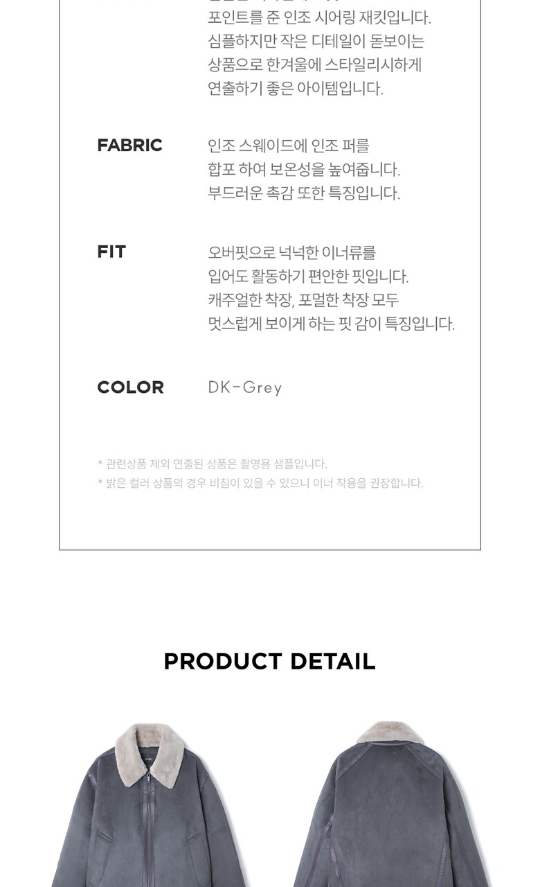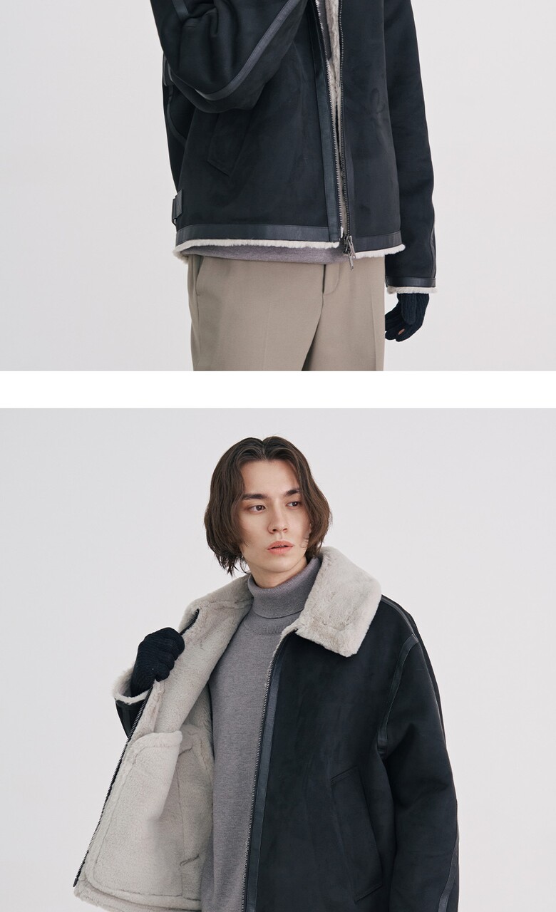 남성 페이크 스웨이드 오버핏 무스탕 (DK-GREY) (HBBMU40)