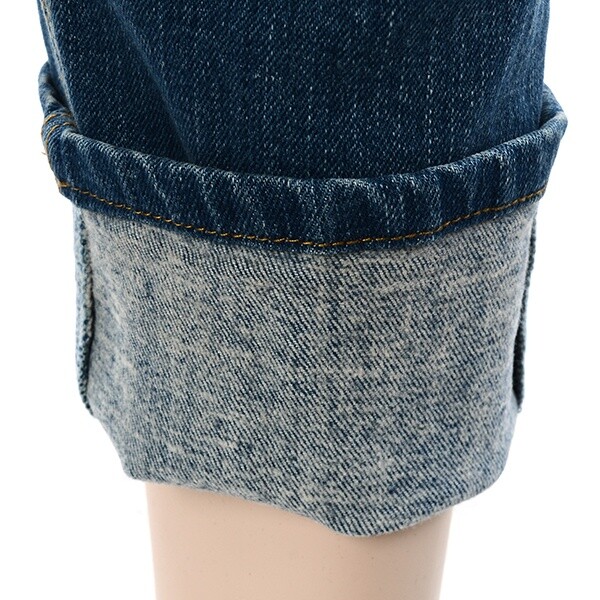 보온성과따뜻한 터치감이 특징인 블루 워싱 데님 팬츠