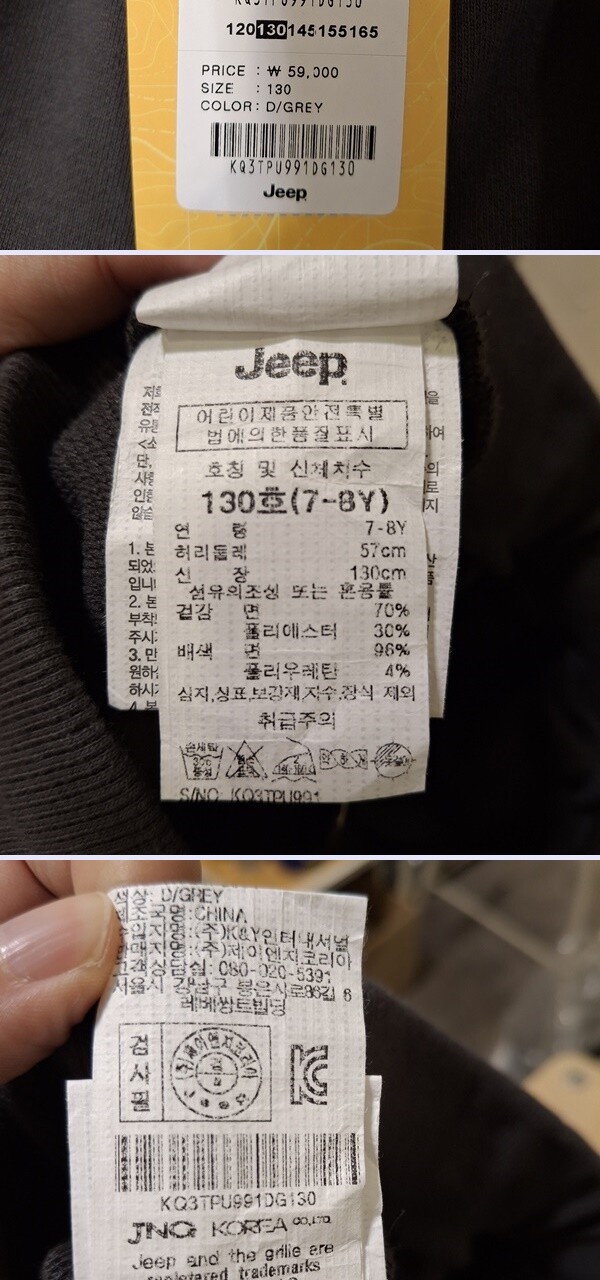 | 1. 제품 소재 (섬유의 조성 또는 혼용률을 백분율로 표시, 기능성인 경우 성적서 또는 허가서) | 겉감-면70%, 폴리에스터30% 배색-면96%, 폴리우레탄4% |
