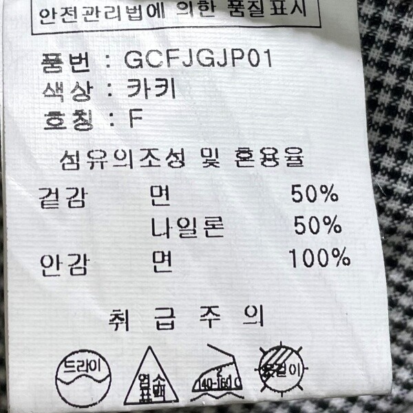 제품소재 : 겉감 면50%나일론50% 안감 면100%