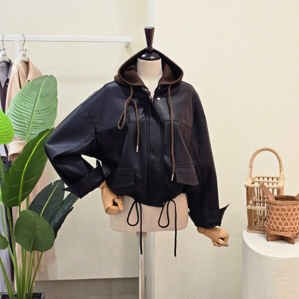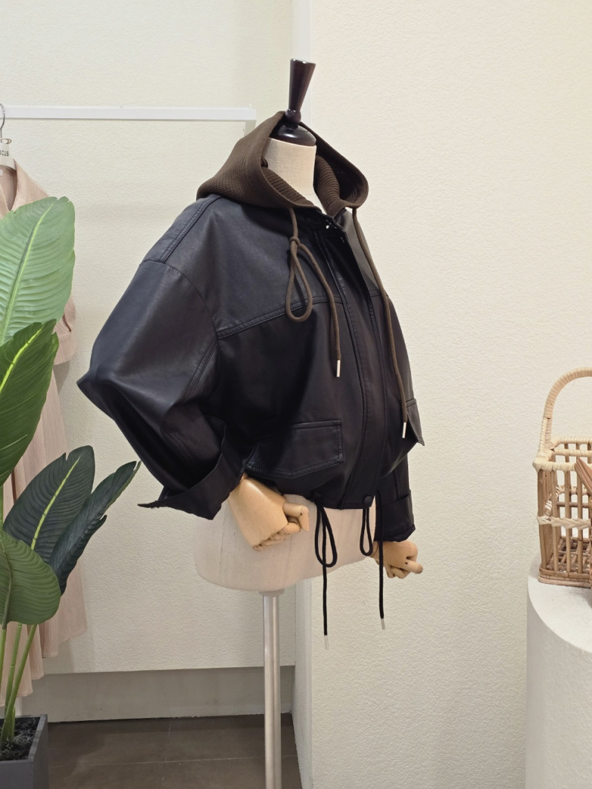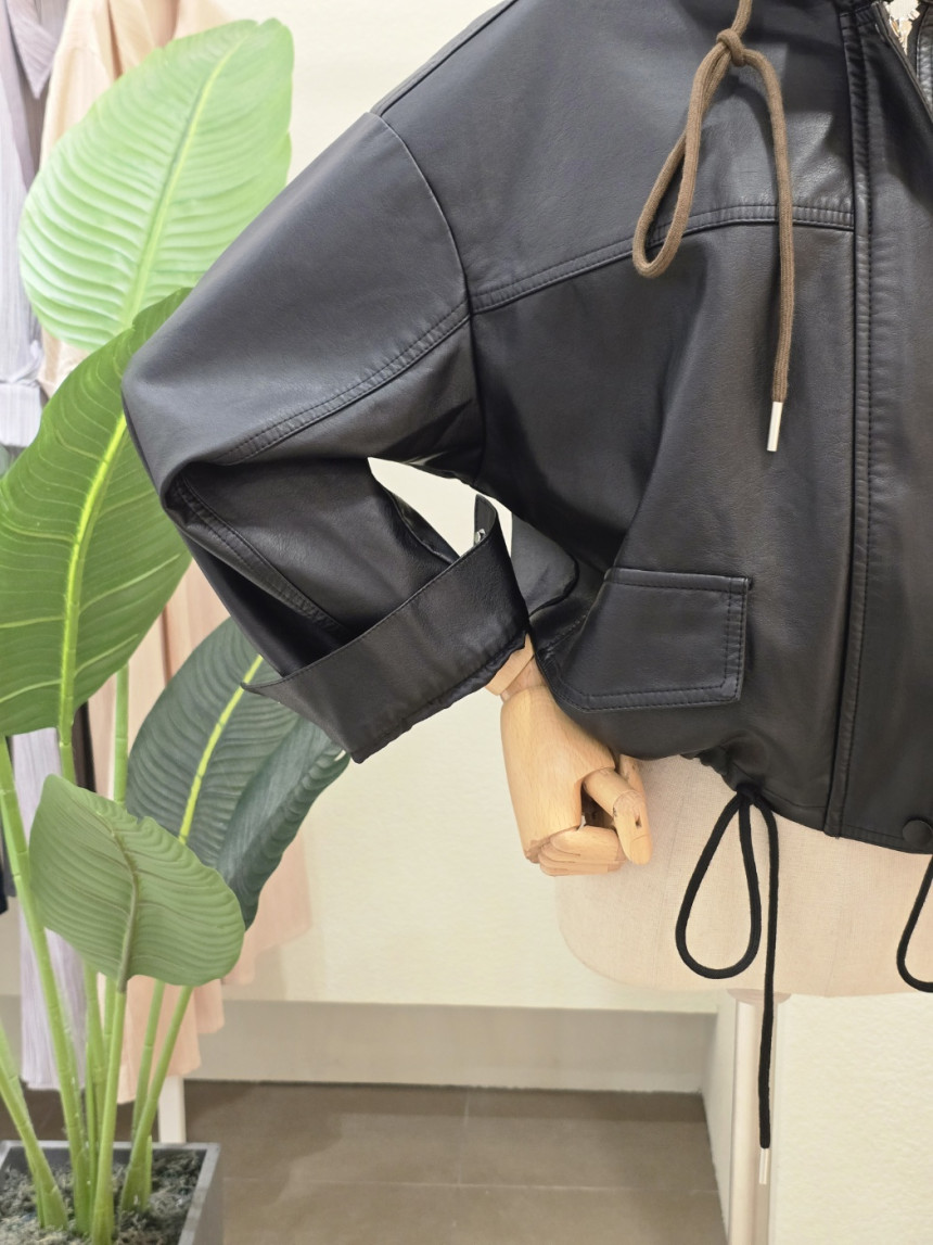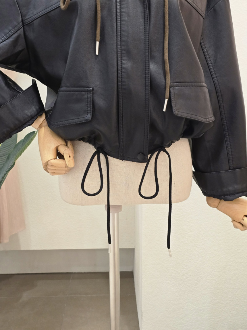FF5I3JP30490_후드 스트링 레더 점퍼