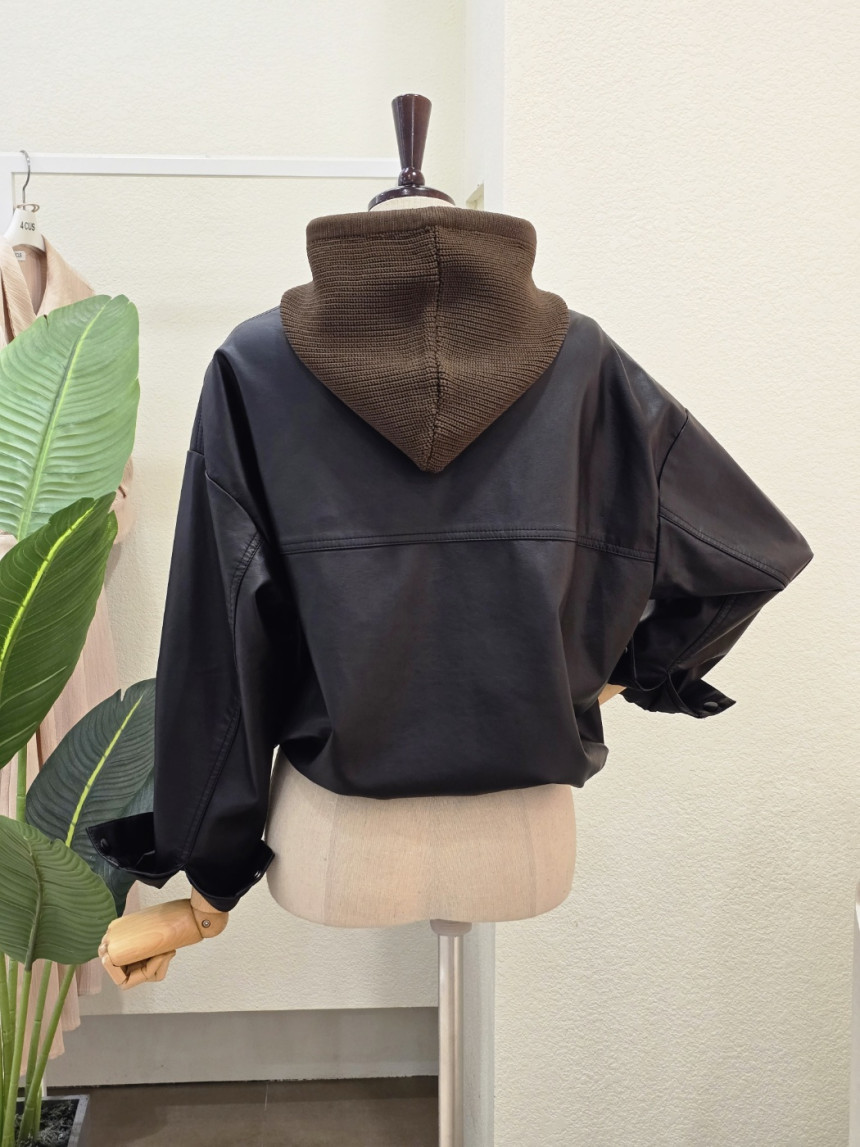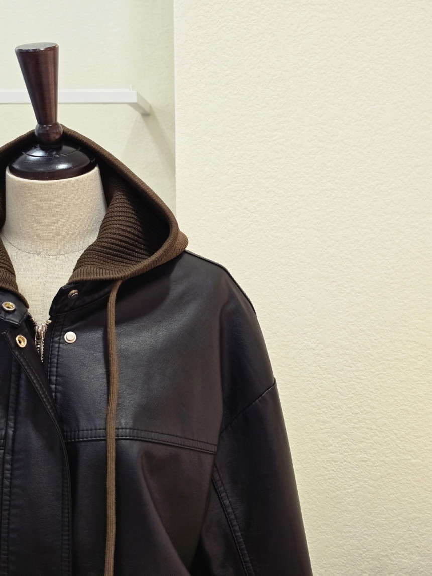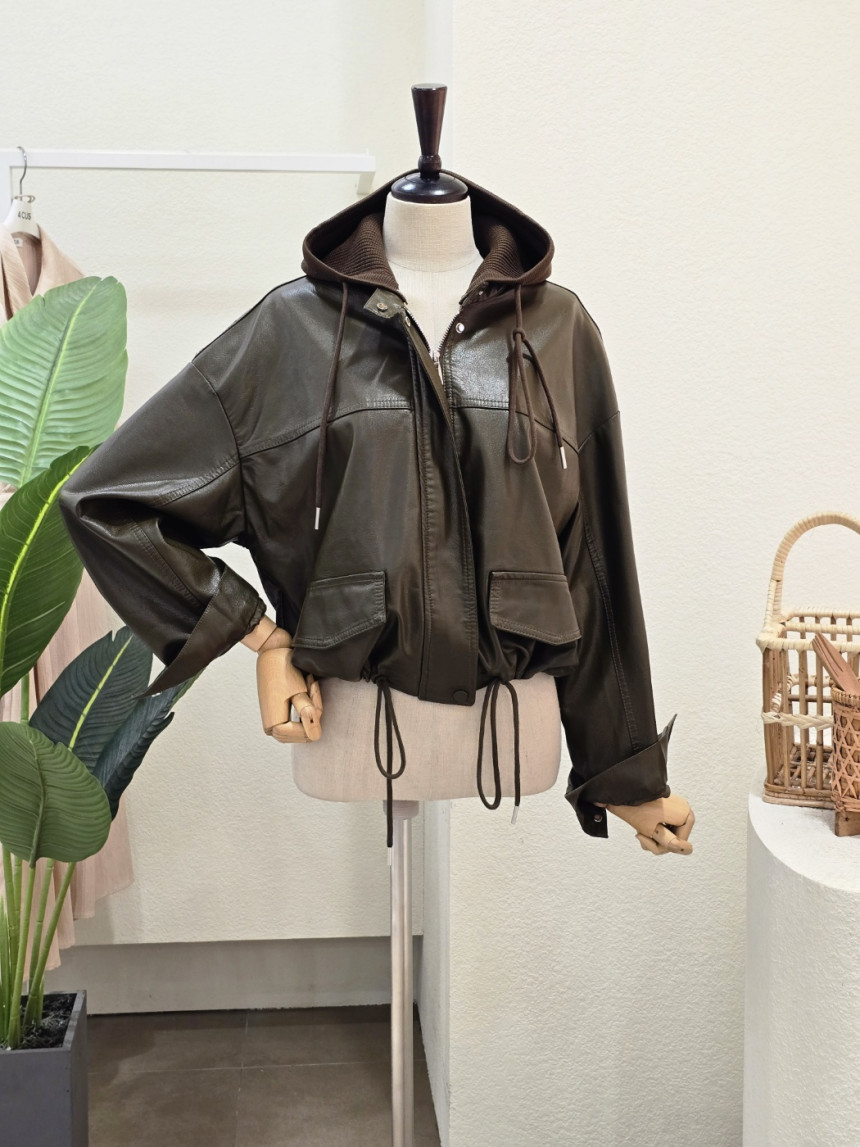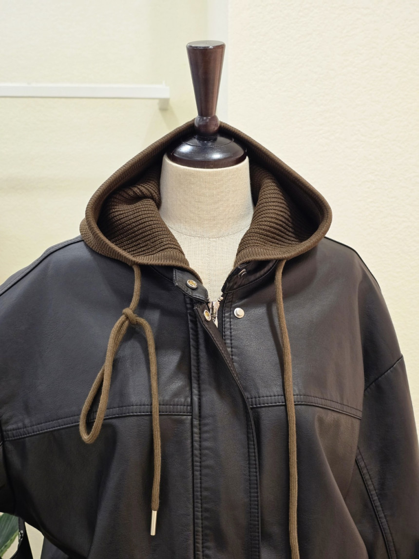 FF5I3JP30490_후드 스트링 레더 점퍼