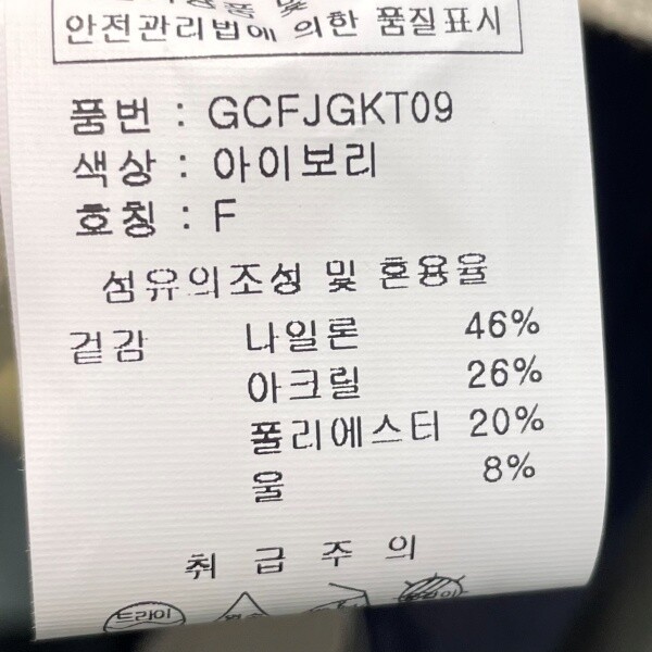 제품소재 : 나일론46%아크릴26%폴리에스터20%울8%