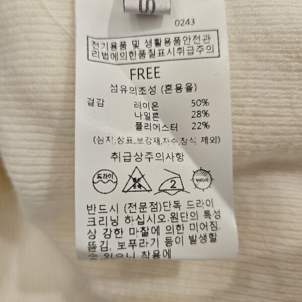 제품소재 : 겉감-레이온50%, 나일론28%, 폴리에스터22%