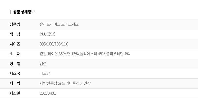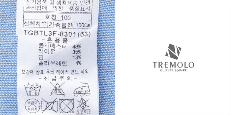 제품소재 : 폴리에스터48%, 레이온35%, 면13%, 폴리우레탄4%