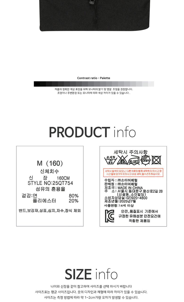 1. 제품 소재 (섬유의 조성 또는 혼용률을 백분율로 표시, 기능성인 경우 성적서 또는 허가서) | 상품상세참조 |