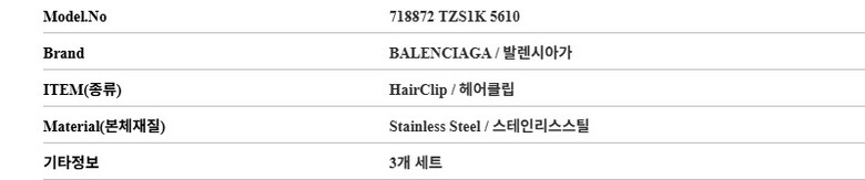발렌시아가 헤어클립 718872 TZS1K 5610 3개 세트 여성헤어클립 당일발송