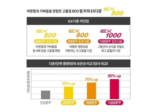 | 1. 제품 소재 (섬유의 조성 또는 혼용률을 백분율로 표시, 기능성인 경우 성적서 또는 허가서) | 겉감 나일론100 %(10데니어 발리스틱 에어 라이트 나일론 립스톱 [발수마감]) 충전재 800필 파워 EX다운 100% |