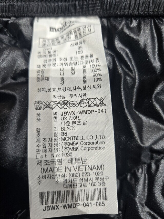JBWXWMDP041 US 라이트 다운 팬츠 남