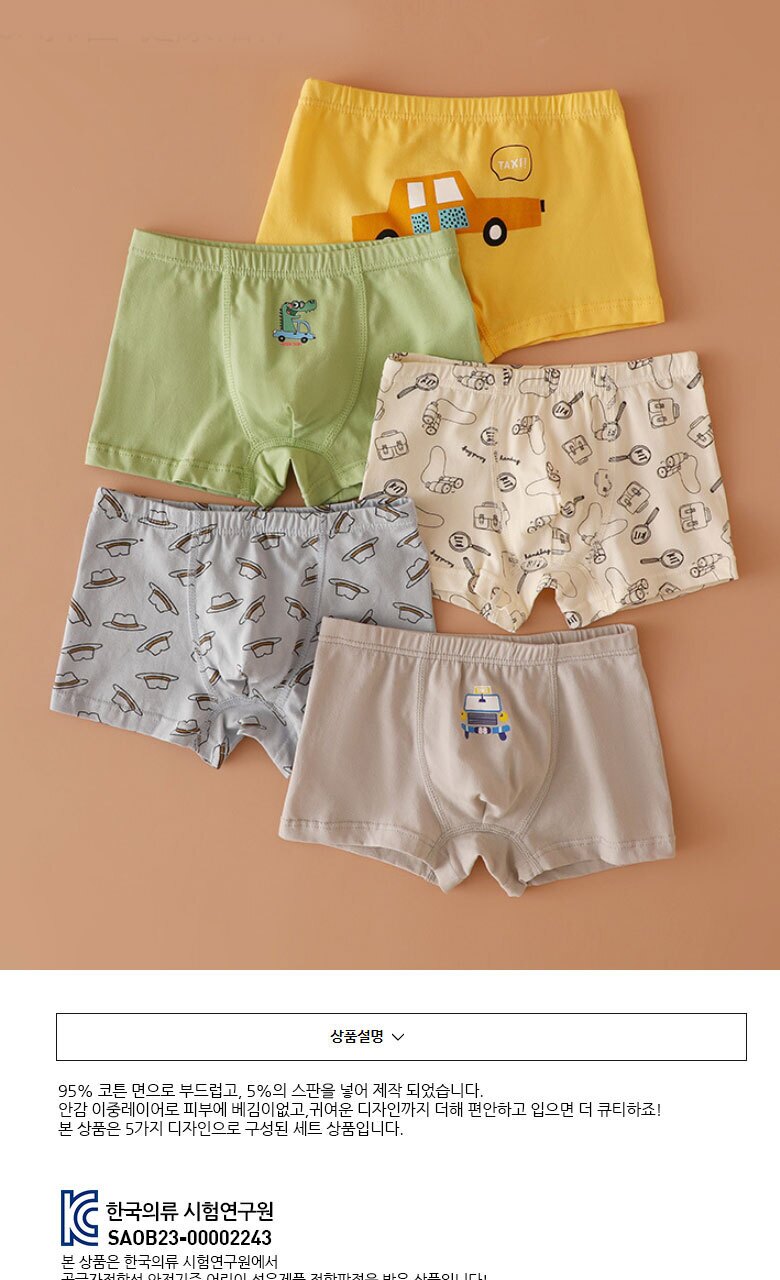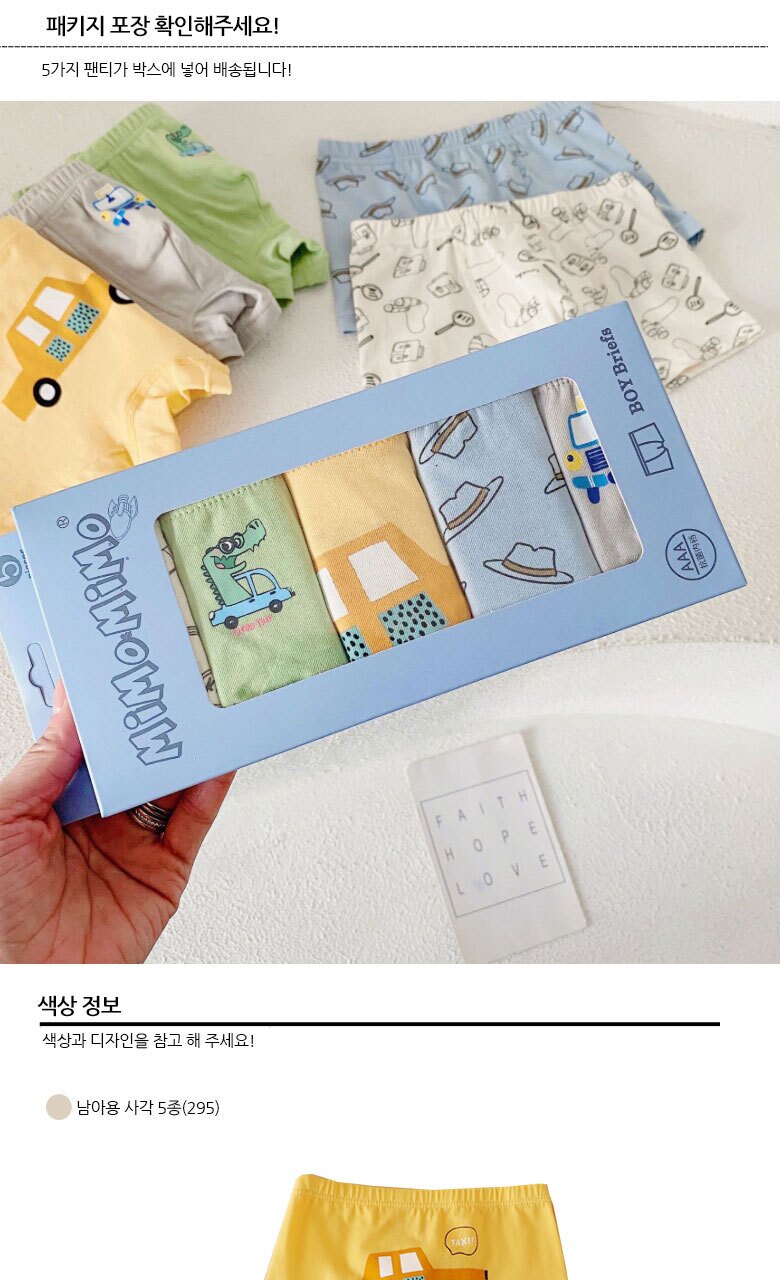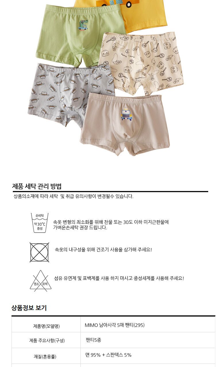 MIMO 남아/주니어 코튼 사각팬티 5매세트(295)