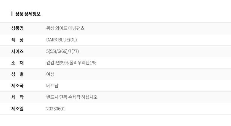 | 6. 세탁방법 및 취급시 주의사항 | 상세페이지 참조 |