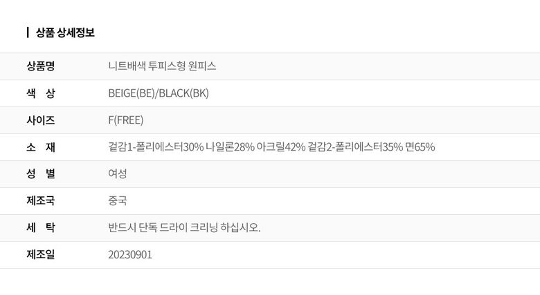 | 2. 색상 | 색상:BEIGE(BE)/BLACK(BK) |
