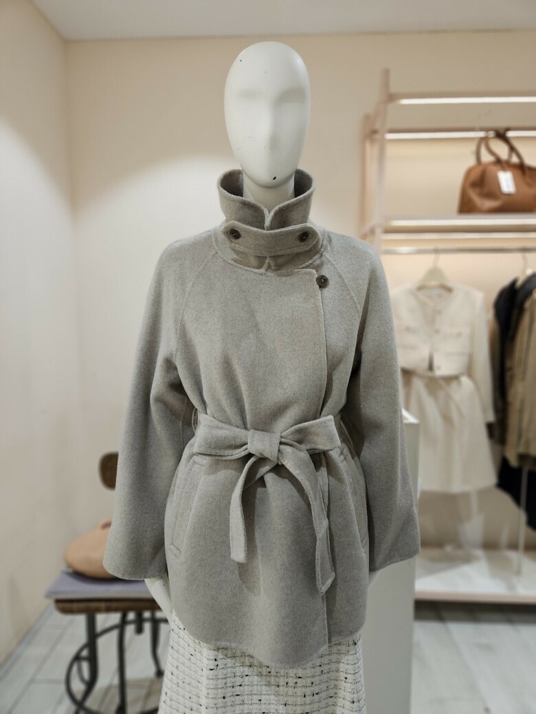 울 캐시미어 빅 칼라 핸드메이드 하프 코트 GRAM0CT911