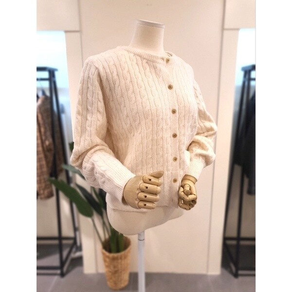 KECDPB01IV_빈스 꽈배기 라운드 가디건 아이보리