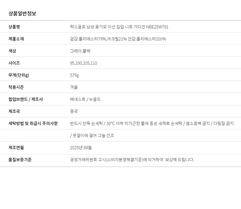 보스케 남성 겨울 골프 융기모 집업 니트 가디건 LB251021160