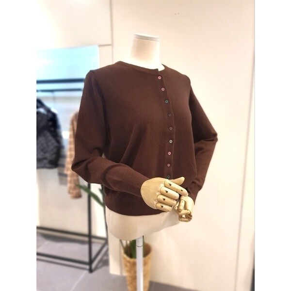 컬러풀한 버튼이 포인트인 기본 라운드넥 가디건입니다.
