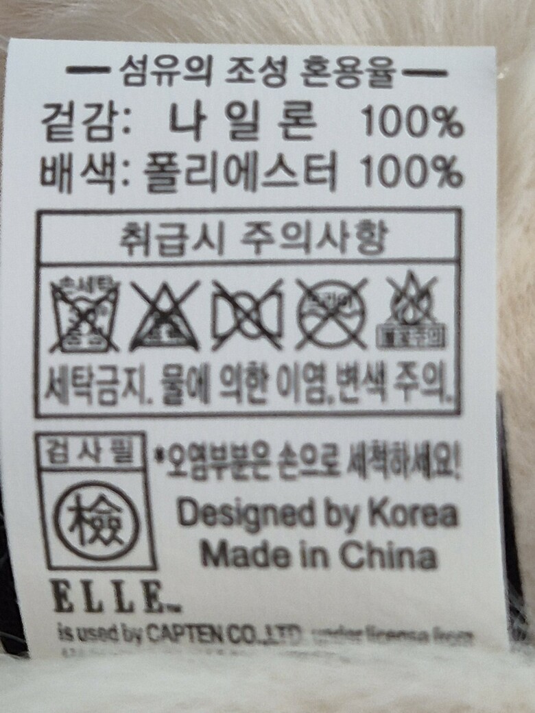 | 2. 소재 | 겉감:나일론 100%, 폴리에스테르 |
