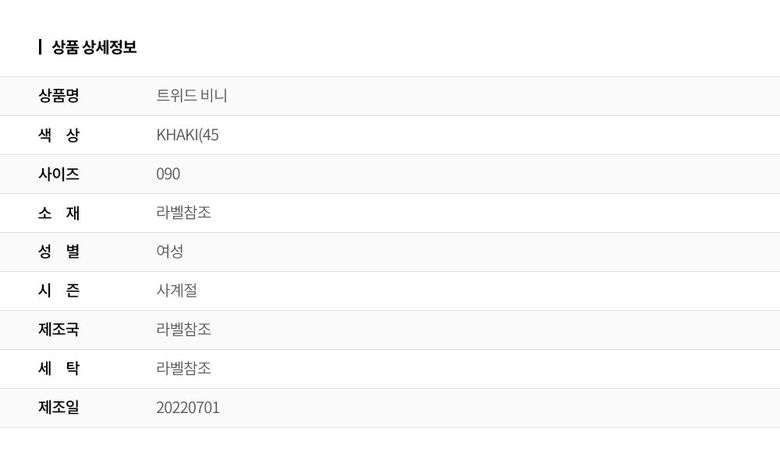 | 기타 기준 사항 | 상품불량에 의한 반품, A/S, 품질보증 및 피해보상 등에 관한 사항은 소비자 분쟁해결기준(공정거래위원회 고시) 구매자가 미성년자인 경우에는 상품 구입시 법정대리인이 동의하지 아니하면 미성년자 본인 또는 법정대리인이 구매취소 할 수 있습니다. |