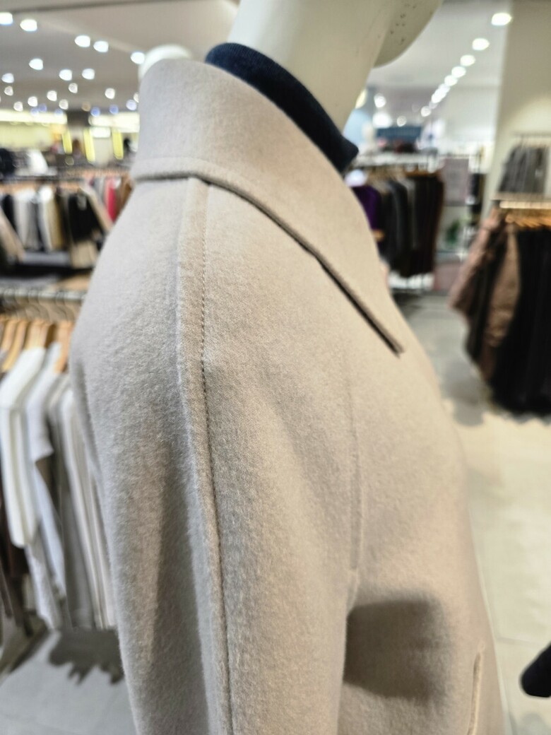 | 1. 제품 소재 (섬유의 조성 또는 혼용률을 백분율로 표시, 기능성인 경우 성적서 또는 허가서) | 겉감:모 70%, 나일론 20%, 캐시미어 10% 안감:폴리에스테르100% 충전 |