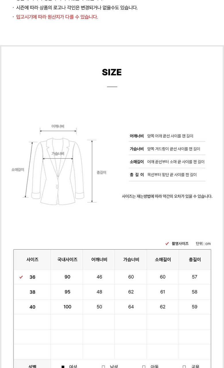 | 3. 치수 | 32,34,36,38,40,42,44,46 |
