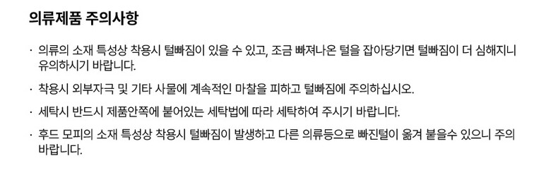 | 6. 세탁방법 및 취급시 주의사항 | 반드시 라벨에 부착된 세탁방법으로 세탁해 주십시오. |
