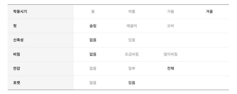 | 6. 세탁방법 및 취급시 주의사항 | 상품상세참조 |