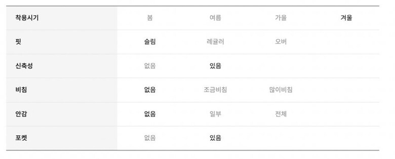 · 겉감 : 폴리에스터61%,레이온34%,폴리우레탄5%