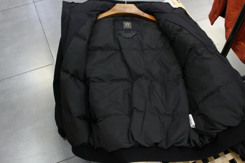바스락거리는 폴리아미드(나일론)외피에 솜털90:깃털10의 오리털충전재로 보온성이 뛰어나며 무게감이 가볍습니다