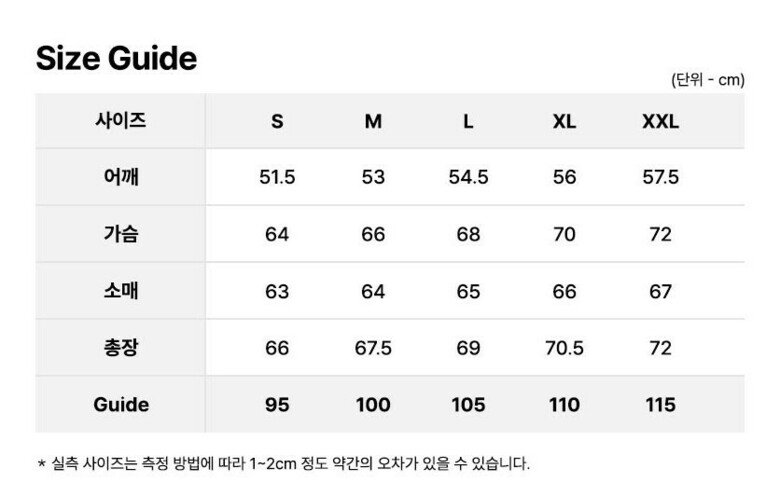 사이즈 : 95(S),100(M),105(L),110(XL),115(XXL)