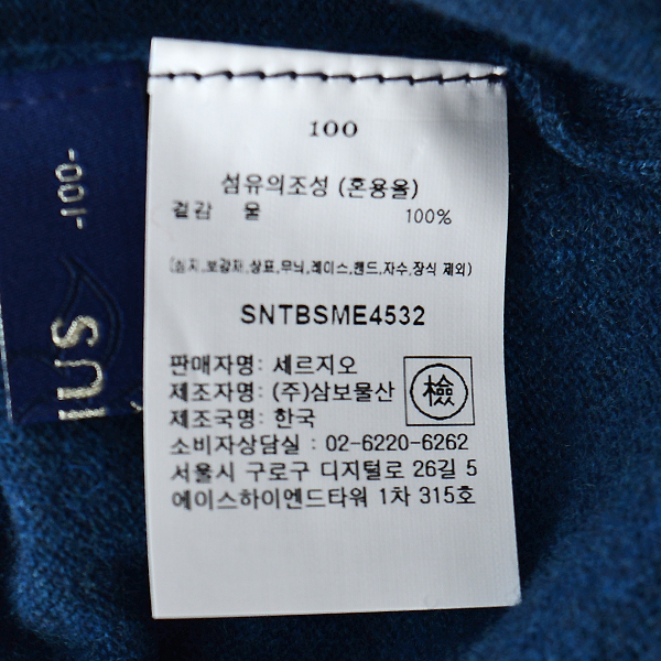 | 1. 제품 소재 (섬유의 조성 또는 혼용률을 백분율로 표시, 기능성인 경우 성적서 또는 허가서) | 모100% |