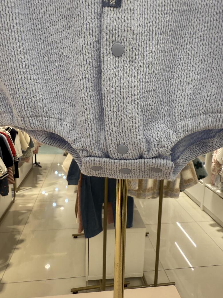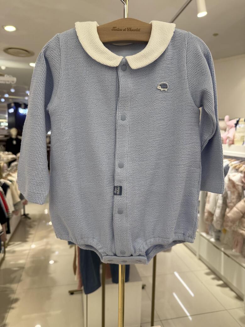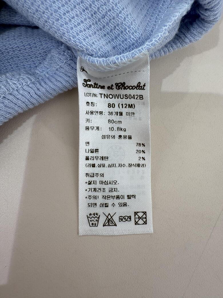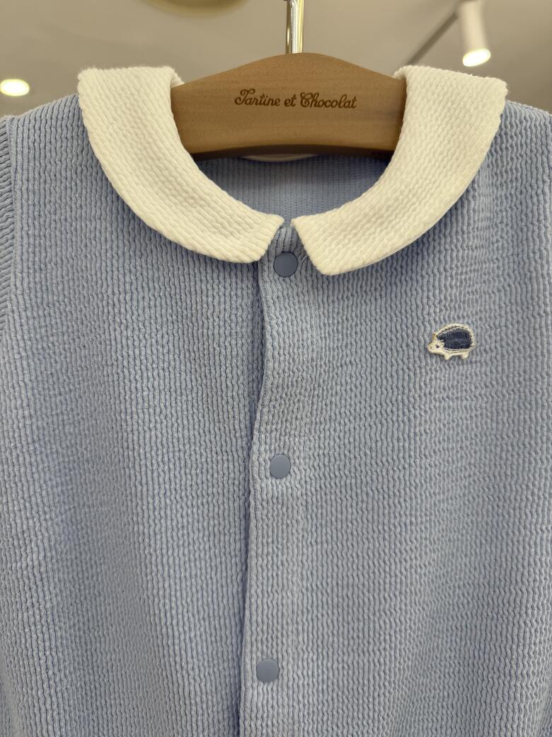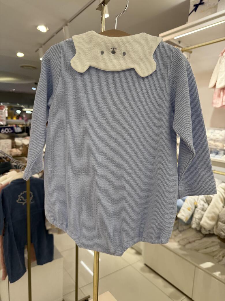 블루 컬러 몸판에 뒷면에는 귀여운 곰 카라 배색단이