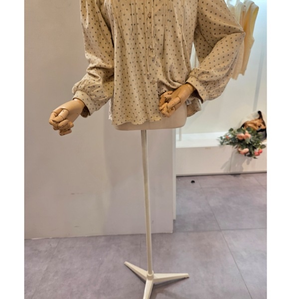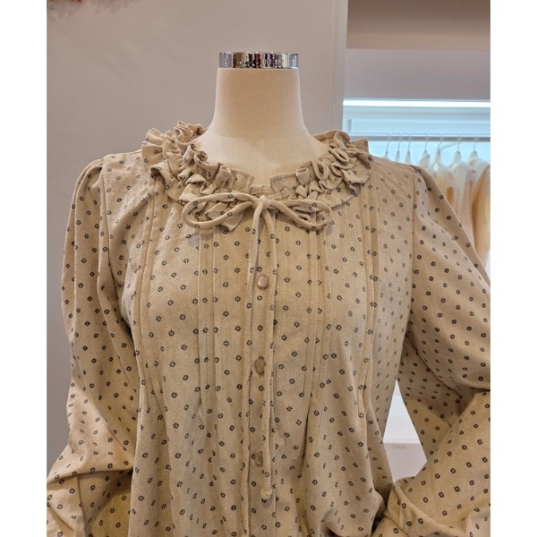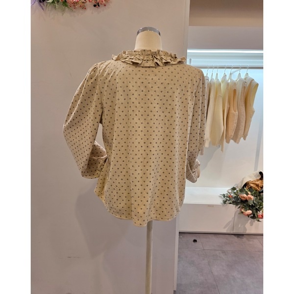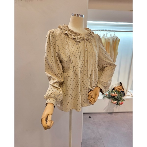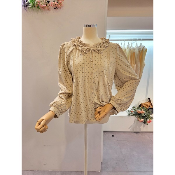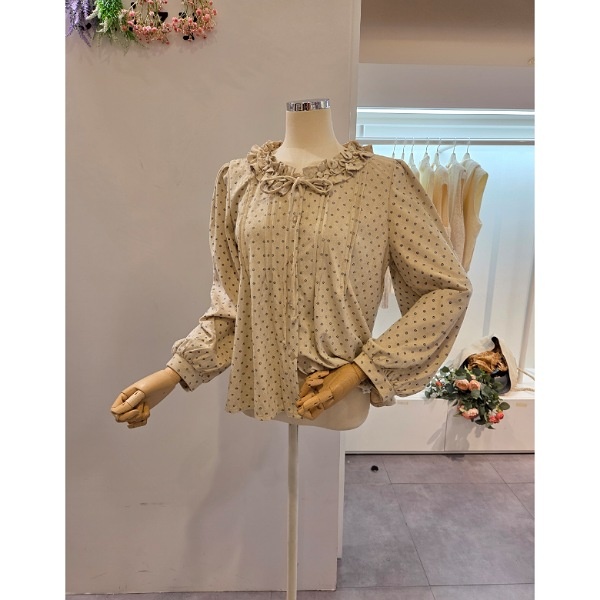 CP8WBL10_패턴 프릴넥 리본 블라우스