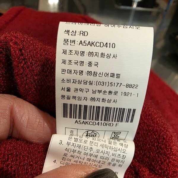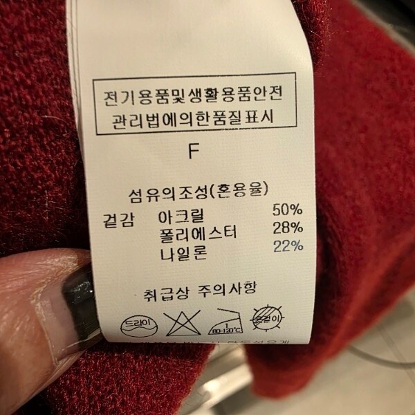 제품소재 : 아크릴 50% 폴리에스터 28% 나일론 22%
