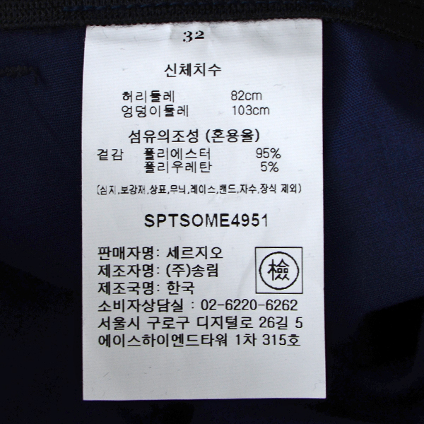 제품소재 : 폴리에스터95%폴리우레탄5%