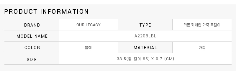 아워레가시 A2208LBL 라돈 블랙 키체인 가죽 목걸이