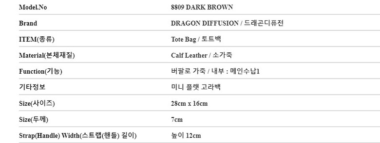 드래곤디퓨전 8809 DARK BROWN 미니 플랫 고라 토트백