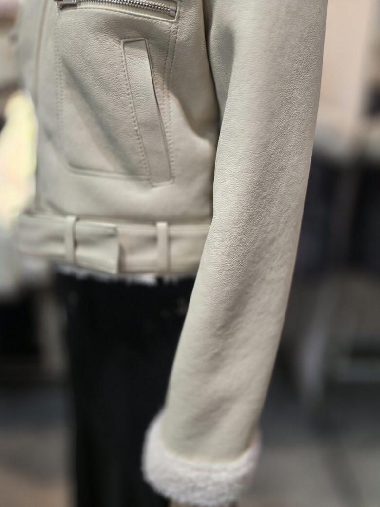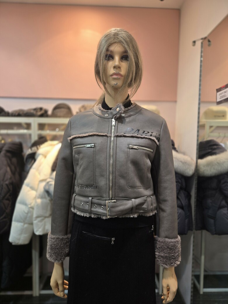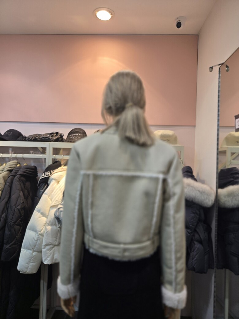 레터링 포인트 크롭 페이크 무스탕 점퍼 EQ4MZ-160