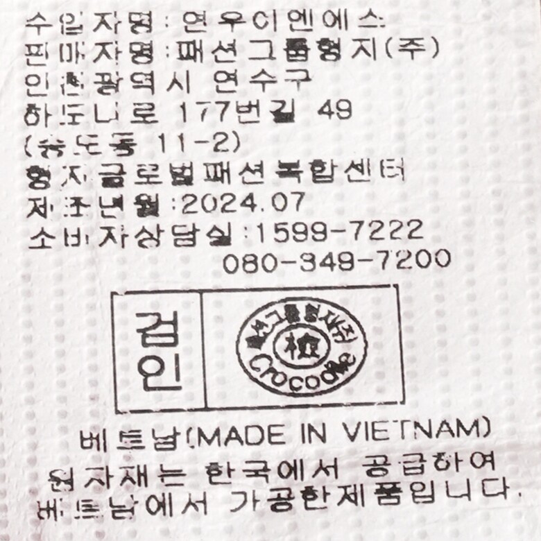 • 아울렛 상품의 특성 상 “택이 훼손”된 경우가 있으나 이는 불량이 아니며 무료 반품 대상 상품이 아닙니다.