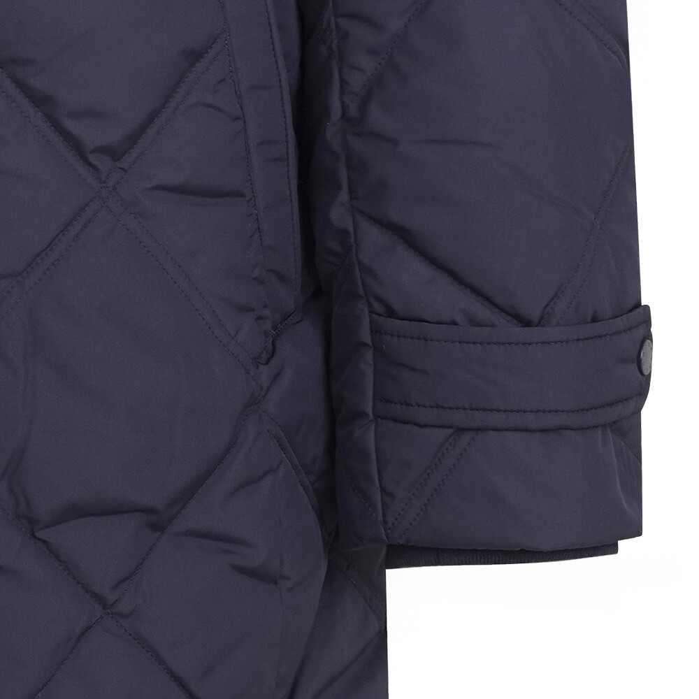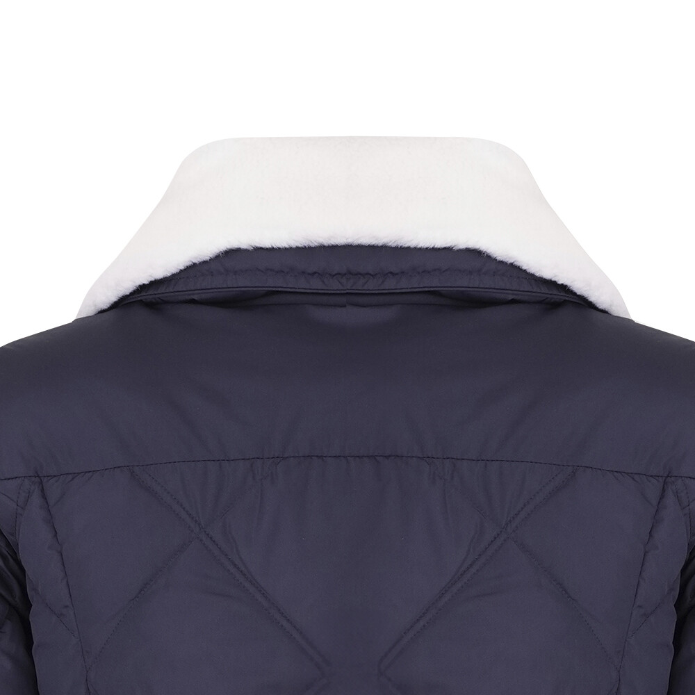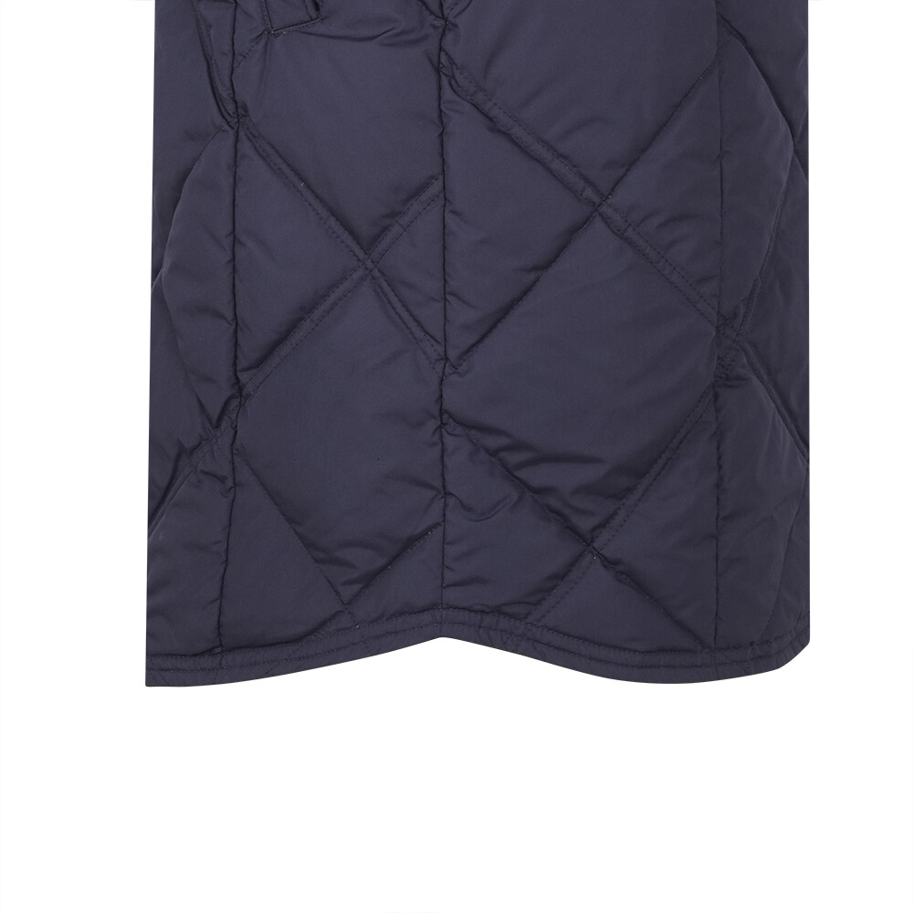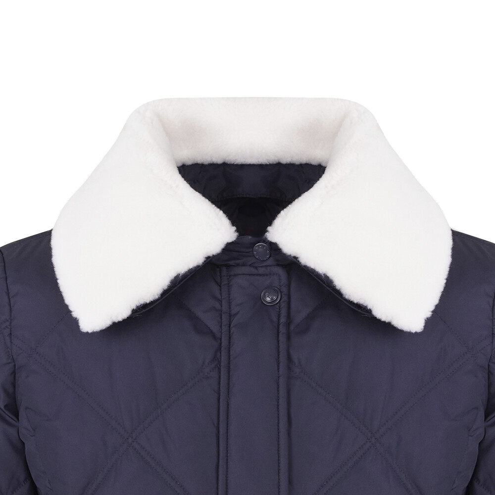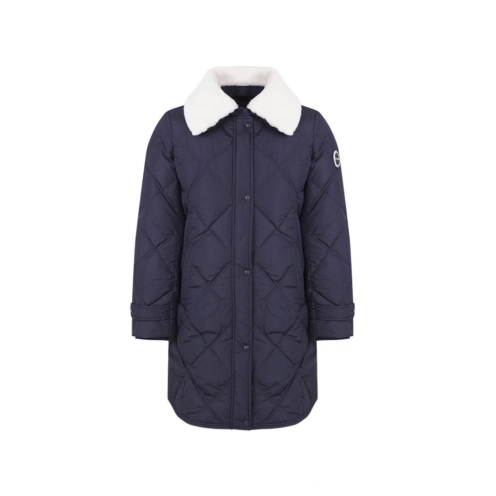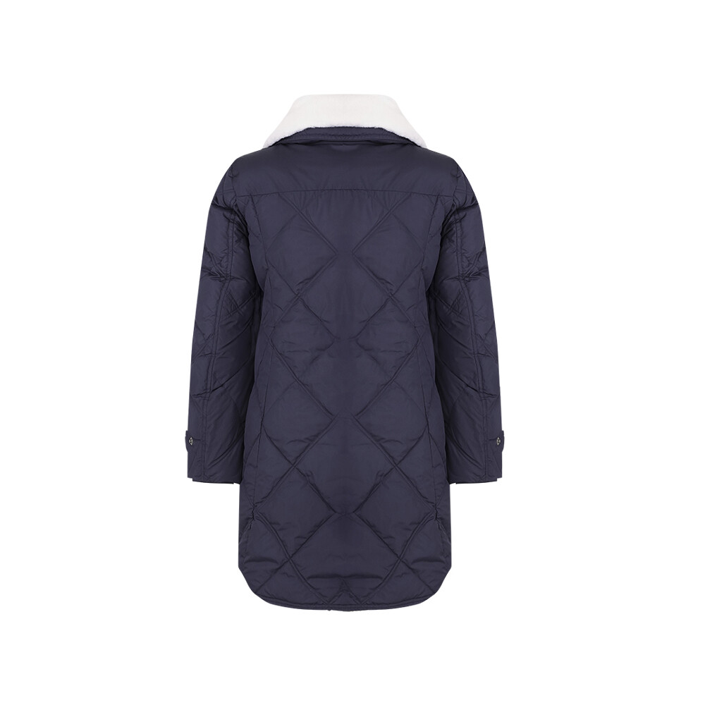 탈부착 가능한 양털 카라로 포근한 감성을 살렸으며|*| 다이아 퀼팅과 소매 양털와펜으로 포인트를 더한 중기장의 다운 아이템.