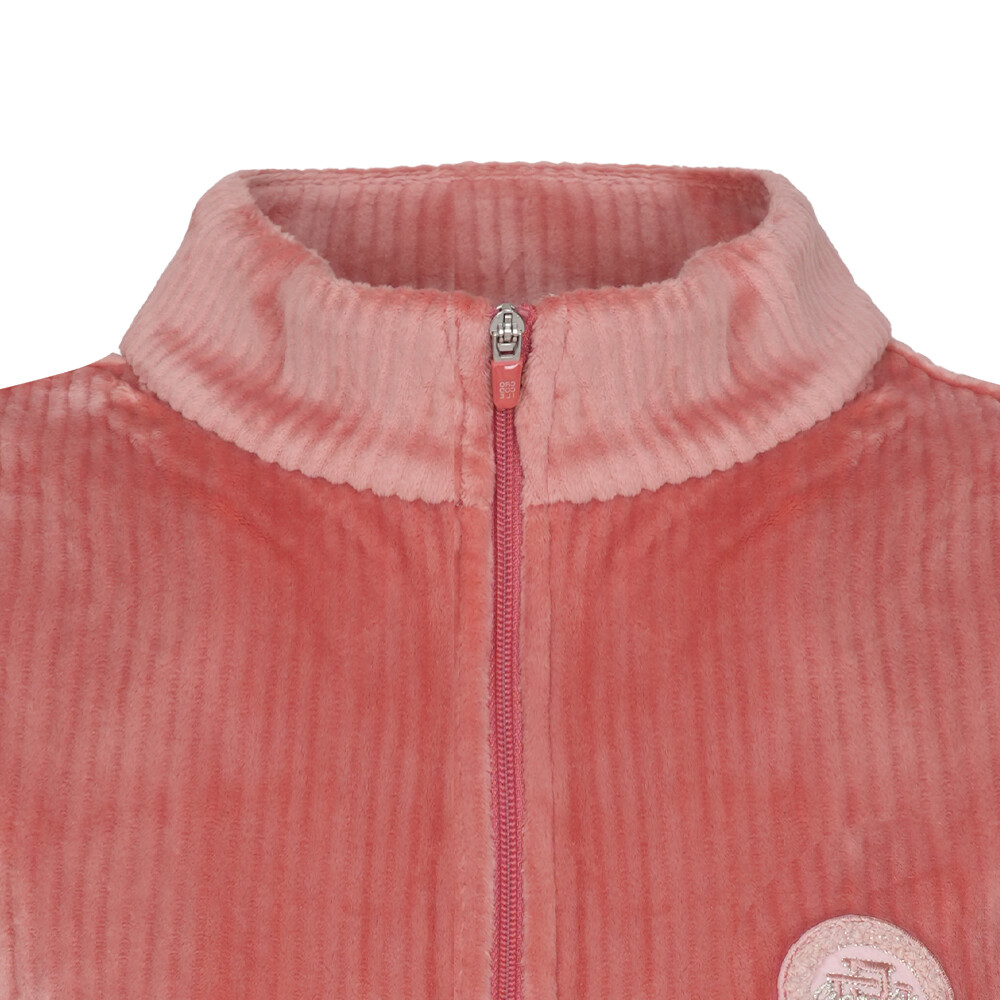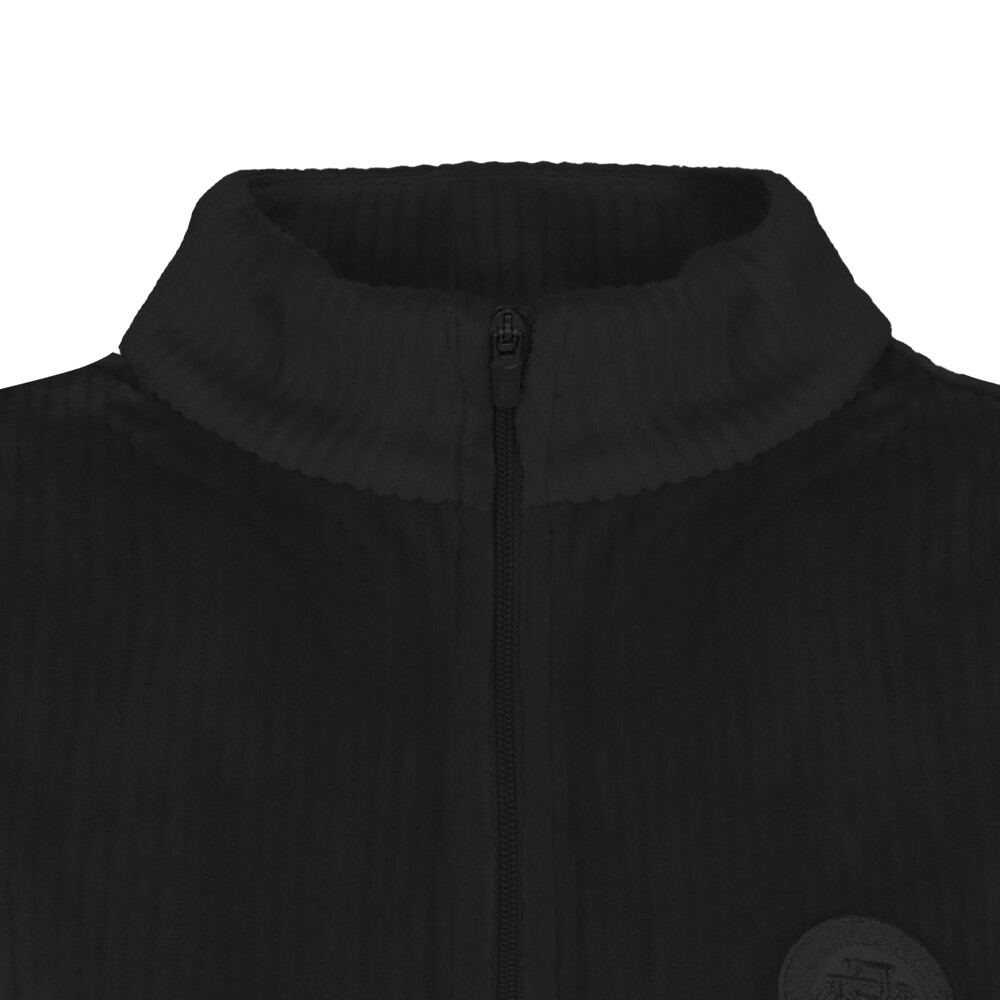 벨로아 골지소재를 사용하여 부드럽고 텐셤감이 좋으며 안쪽 모가 보온성을 높여주고 뽀글이 와펜이 포인트인 스포티하고 세련된 반넥 풀오픈 베스트