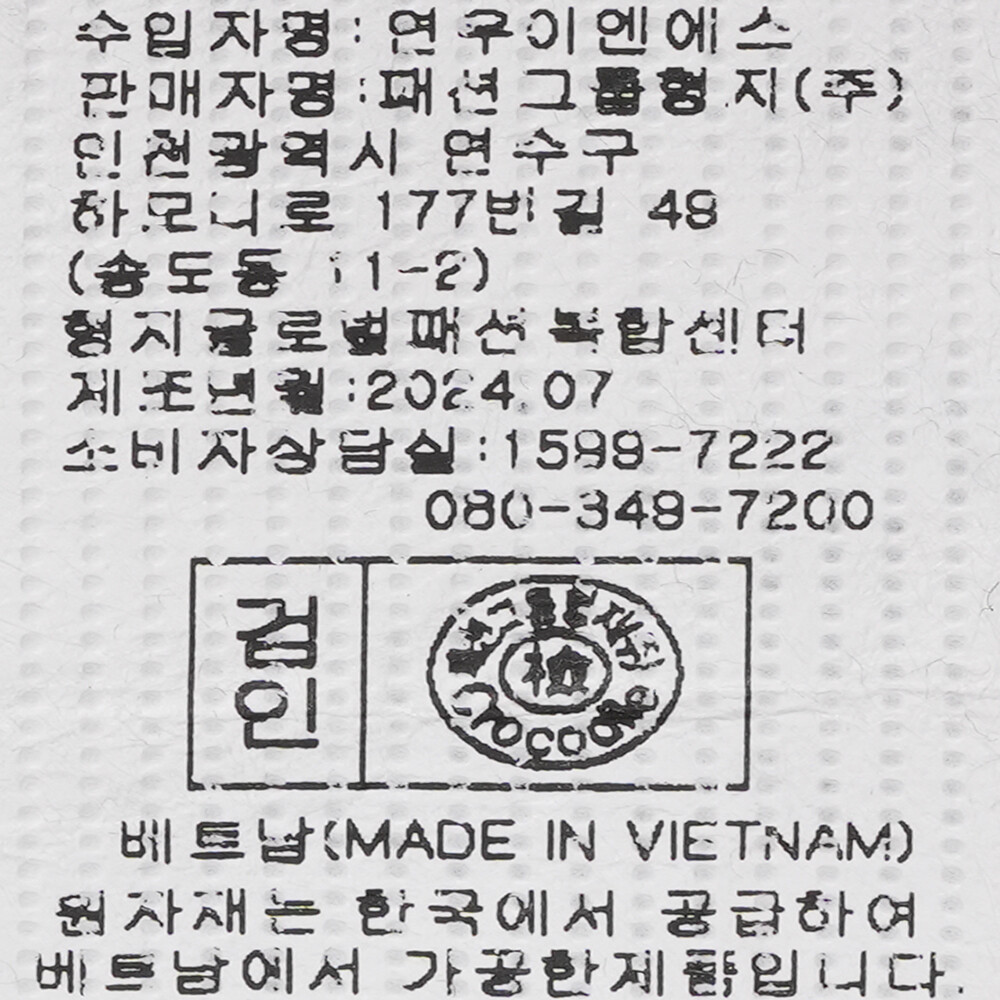 | 1. 제품 소재 (섬유의 조성 또는 혼용률을 백분율로 표시, 기능성인 경우 성적서 또는 허가서) | 상품상세참조 |
