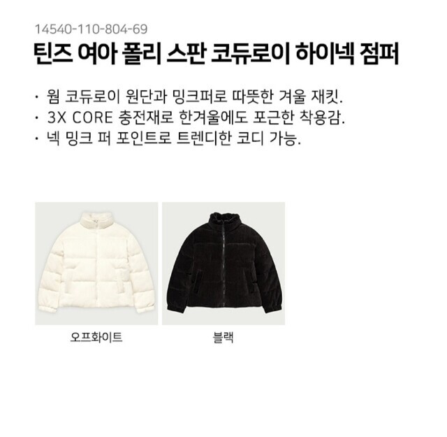 | 1. 제품 소재 (섬유의 조성 또는 혼용률을 백분율로 표시, 기능성인 경우 성적서 또는 허가서) | 상품상세참조 |