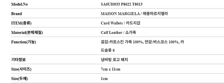 마르지엘라 지갑 SA6UI0033 P8622 T8013 MM6 넘버링 로고 패치 카드지갑 당일발송