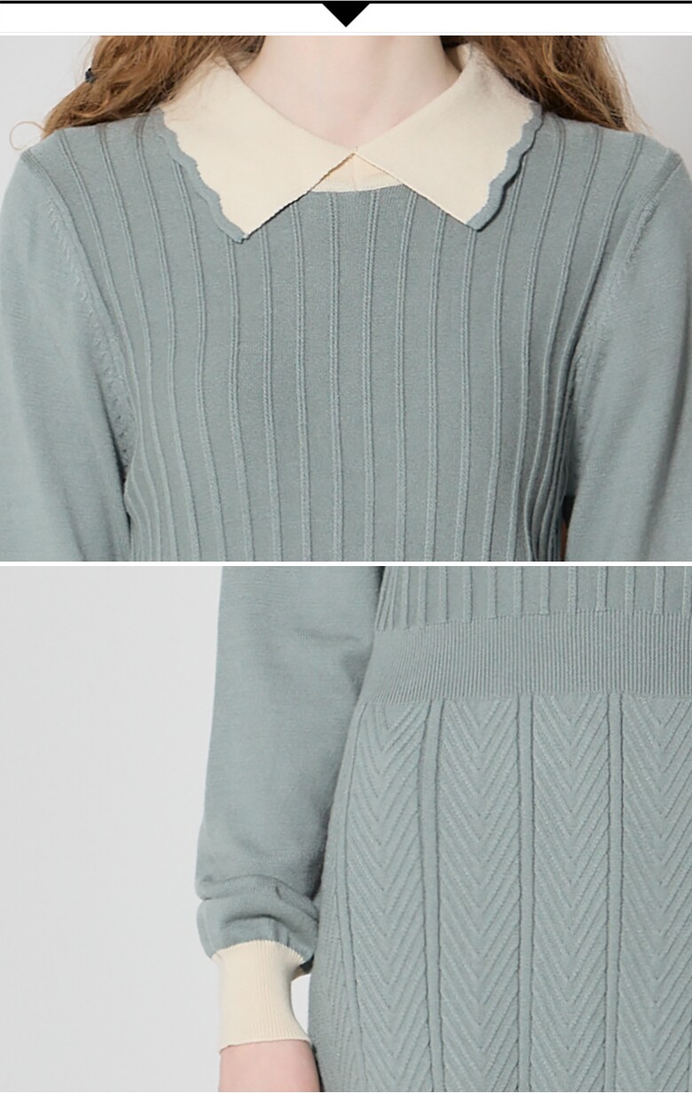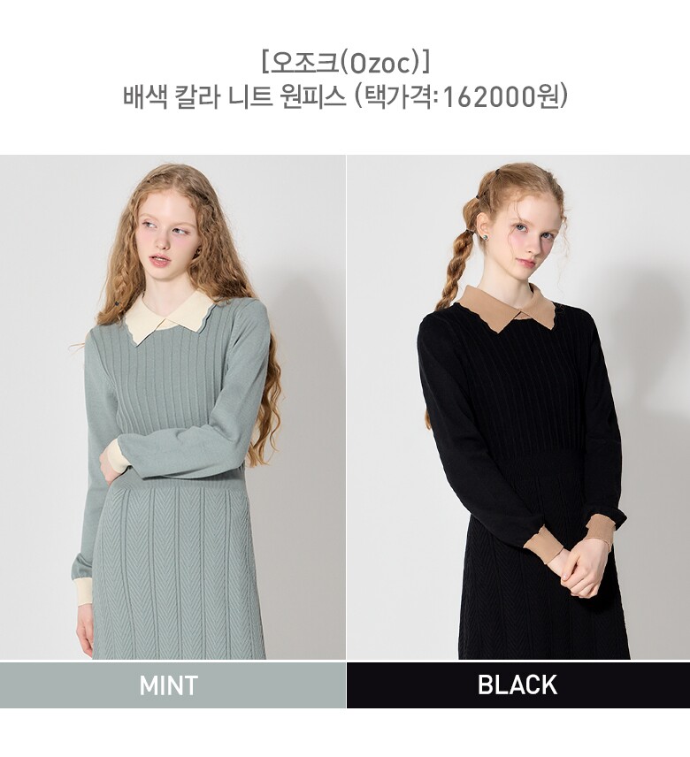 [오조크(OZOC)] 배색 칼라 니트 원피스 (택가격: 162000원)