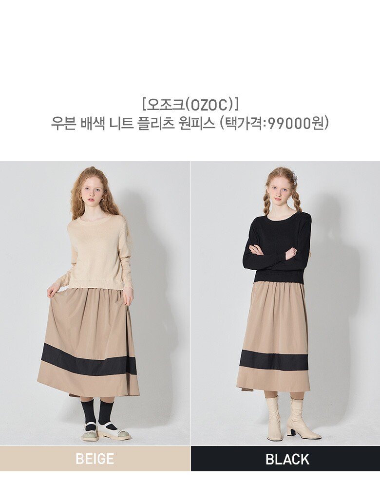 [오조크(OZOC)] 우븐 배색 니트 플리츠 원피스 (택가격: 99000원)