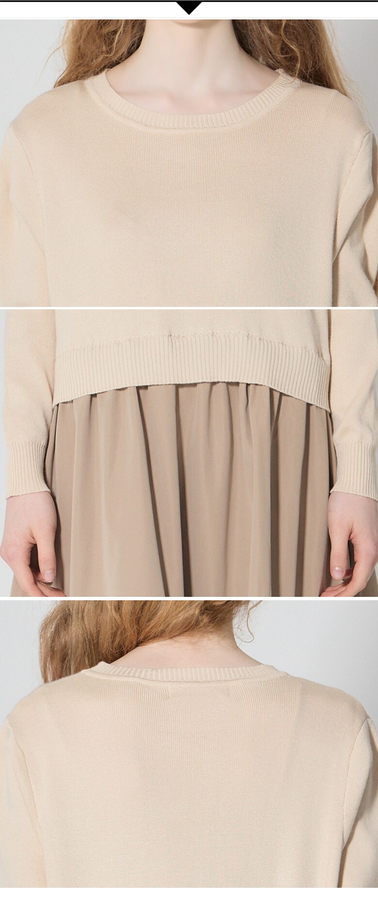 ITEM : 우븐 배색 니트 플리츠 원피스