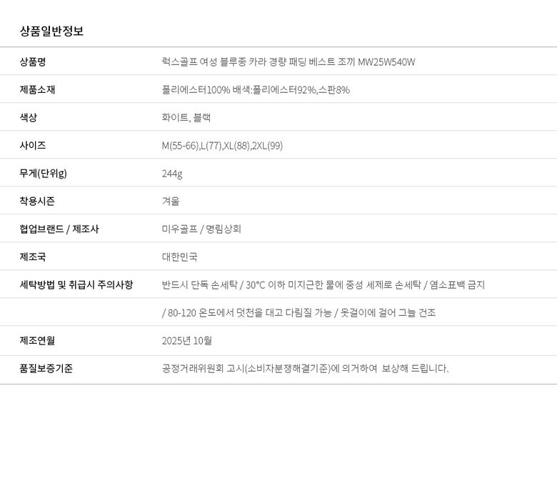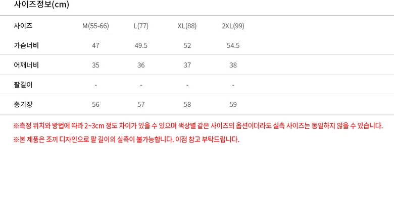 | 3. 치수 | M(55-66),L(77),XL(88),2XL(99) |