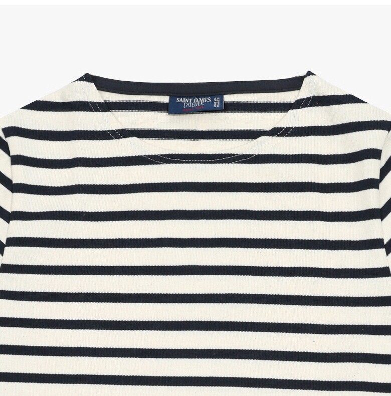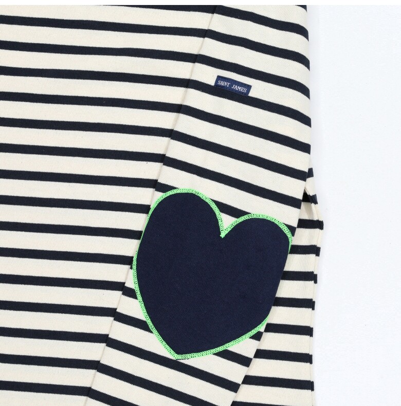 세인트제임스 8649 ECRU MARI TONIC 보쟈니 스트라이프 엘보 하트 패치 여성 긴팔티