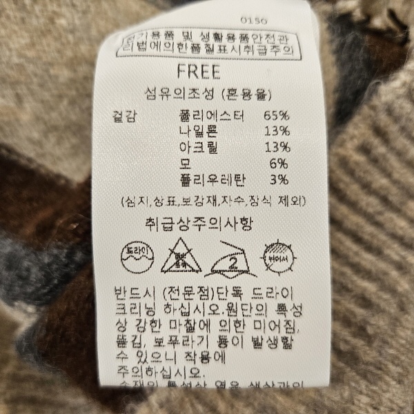 제품소재 : 겉감-폴리에스터65%, 나일론13%, 아크릴13%, 모6%, 폴리우레탄3%